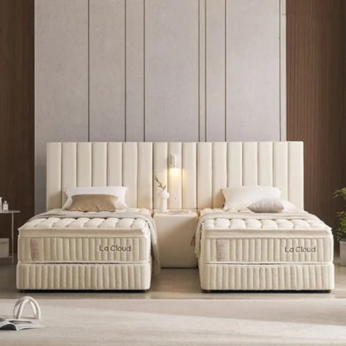 [라클라우드] 루즈노 프리미엄 침대 프레임+매트리스+패널 세트 _ 트윈 (아이보리/그레이)